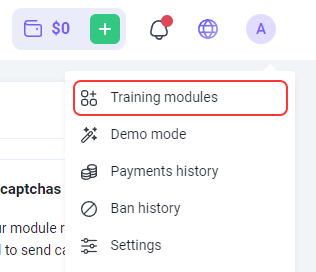 To go to the module training page, click your email in the top-right corner of the site and select the corresponding menu option.