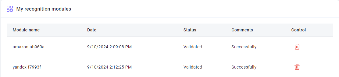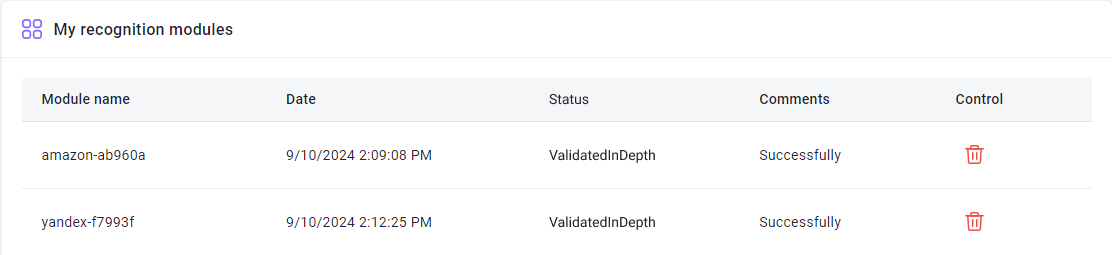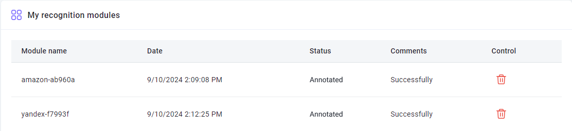 - Submit tasks for recognition, specifying the name of the created module.