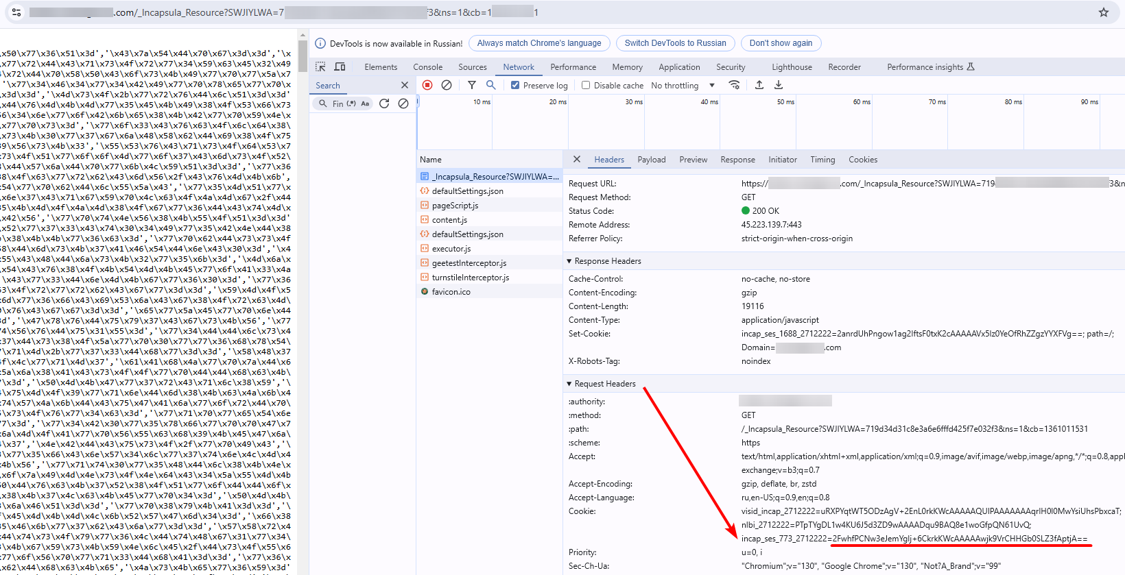 incapsulaCookies (inside metadata)<string>requiredYour cookies from Incapsula. They can be obtained on the page using document.cookie or in the request header Set-Cookie: "incap_sess_=...; visid_incap_=..." (see the /createTask request example).
