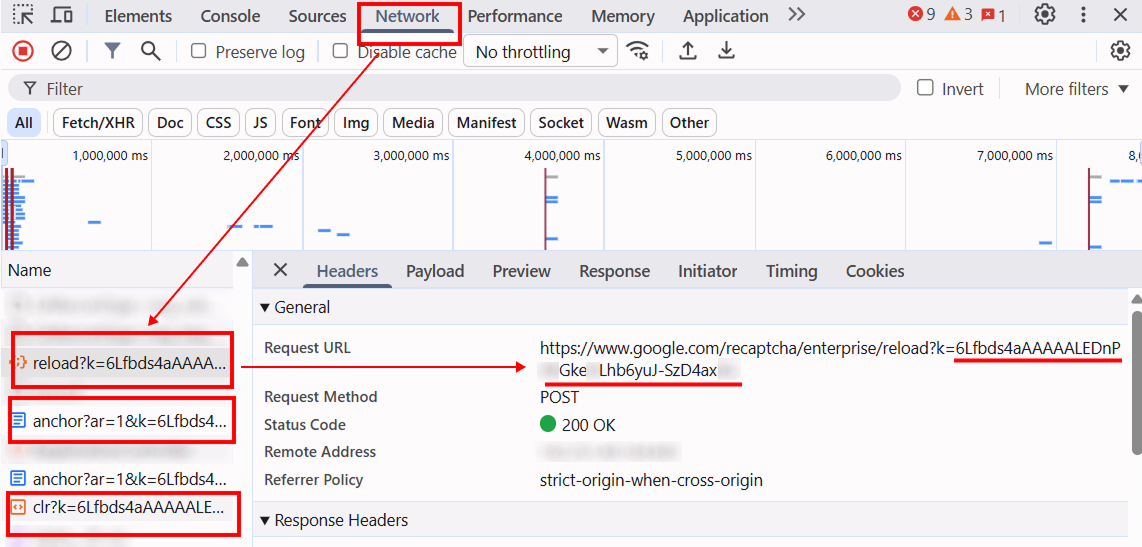 | Identification on the site | iframe and script use standard v3 URLs | iframe and script include enterprise in the URL (/enterprise.js, /enterprise/anchor, /enterprise/reload) |