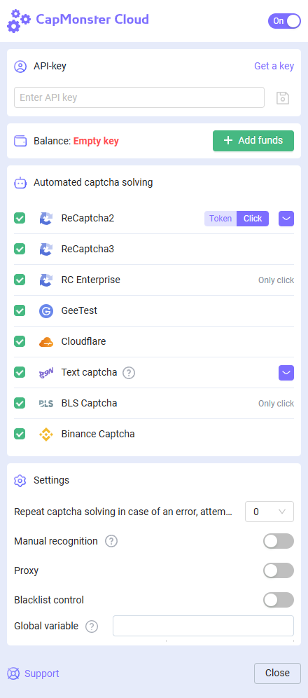 A extensão CapMonster Cloud oferece uma maneira prática de visualizar os parâmetros de vários tipos de captchas necessários para o envio correto da tarefa ao servidor e a sua resolução com sucesso. Os dados exibidos ajudam a garantir a precisão dos parâmetros enviados e podem ser usados como exemplo na construção das suas requisições de API.