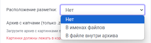 После того как вы указали имя модуля, выбрали типы символов и расположение ответов, осталось только загрузить zip-архив с капчами и отправить нам.