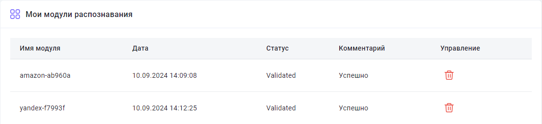 В этой колонке отображается кнопка «Удалить» только для модулей со статусом Validated.