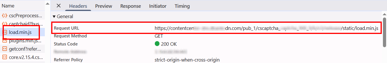 Путь к JavaScript-файлу, который отвечает за загрузку капчи на странице, обычно можно найти в сетевых запросах. Чаще всего он имеет имя вроде load.min.js.