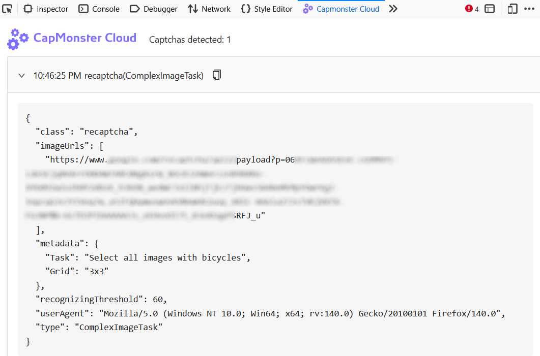 | reCAPTCHA V2 | class, imageUrls, Task (внутри metadata), Grid (внутри metadata), recognizingThreshold, userAgent, type |