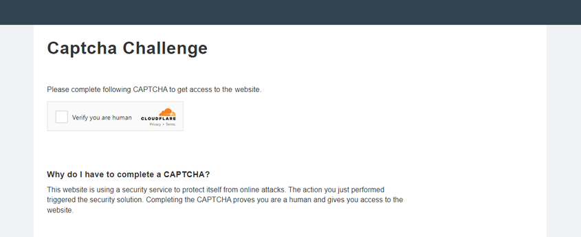 您需要解决一个标准 Turnstile 验证码,例如 这里。注意,Cloudflare 页面上的验证码可能看起来完全相同。请参阅文章末尾以区分标准 Turnstile 和 Cloudflare Challenge。